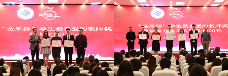 李天福宣布获奖名单。李华夏、费秀芬、余继军、王玉英、田书芹、谷明信、张媛媛、周杰、谢廷智、熊华宇10位教师获得“金果源”学生最喜爱的教师奖;高君华、赵莉莎、陈晶3位教师获“金果源”学生最喜爱的教师奖提名奖;李彧沛、曾鑫淼、张紫东、姜大富、文镜媛5位同学获得最佳推介奖。李天福对校友给予母校的大力支持表示由衷的感谢。他希望,此项活动能够越办越好,希望老师们牢记初心,坚守职业操守,永远热爱学生。