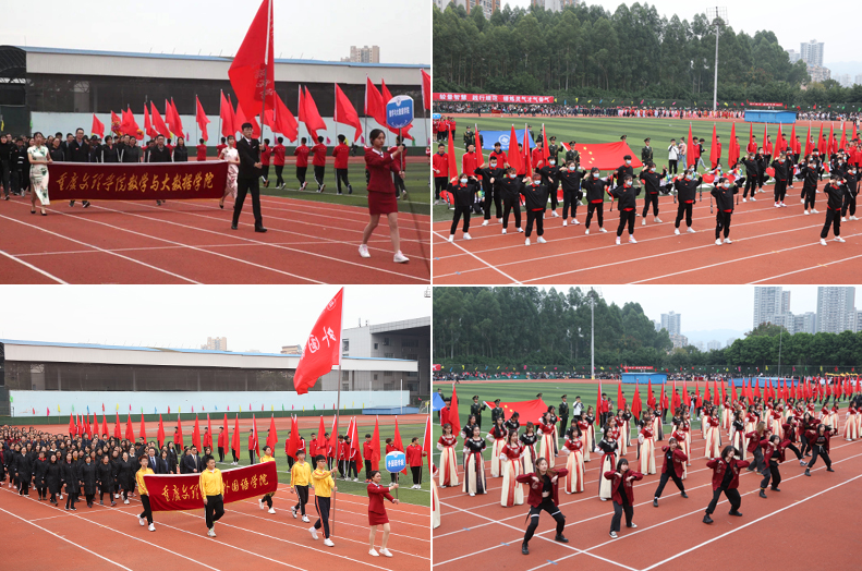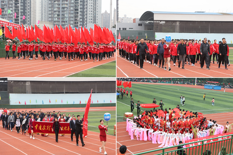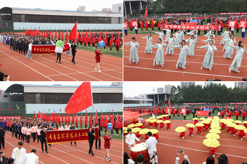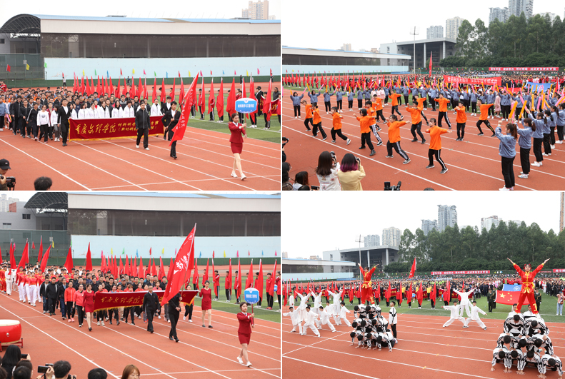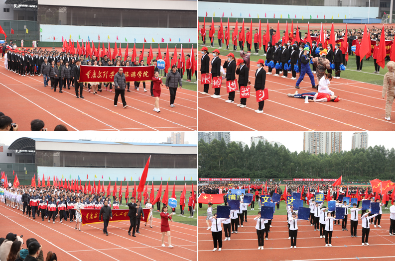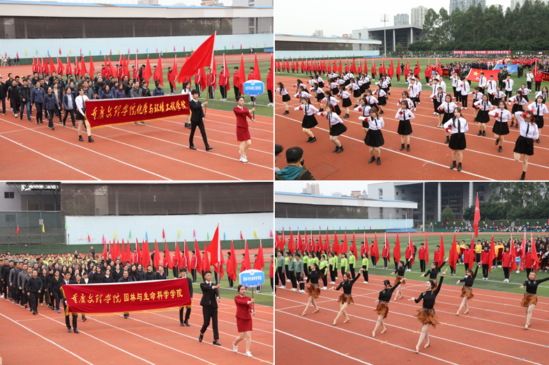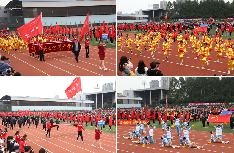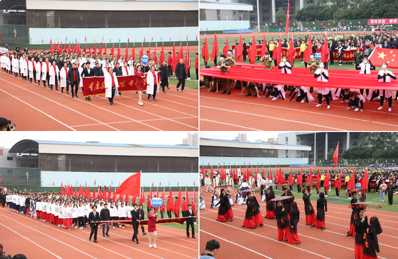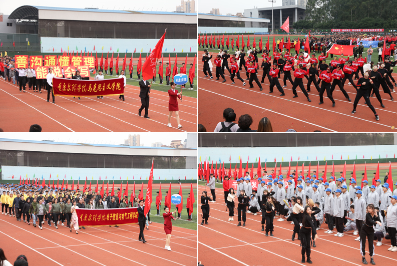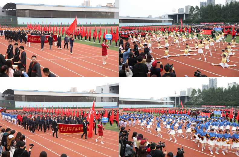 开幕式上各代表队依次入场,精彩的入场展示充分体现了我校的办学特色和办学成果。学校副校长、校体委副主任漆新贵致开幕词,党委副书记兰刚宣布运动会开幕。