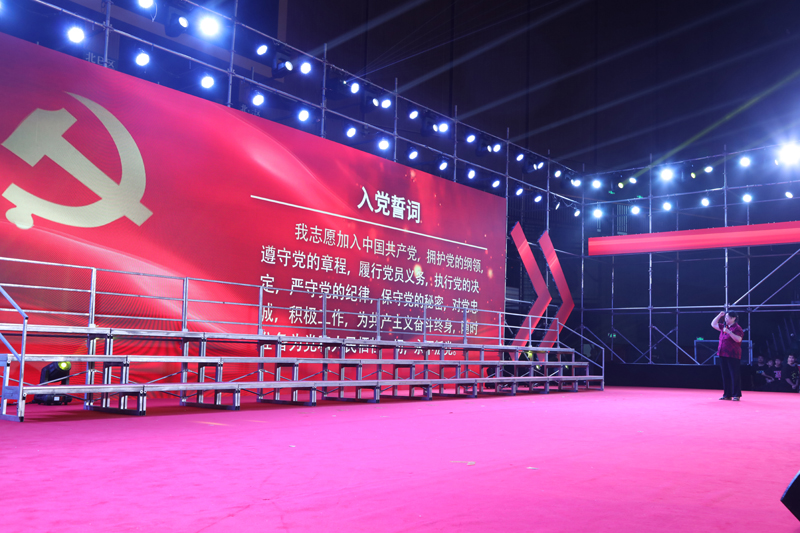 在老党员、老领导刘定云同志带领下,现场全体党员重温入党誓词,文艺晚会拉开序幕。
