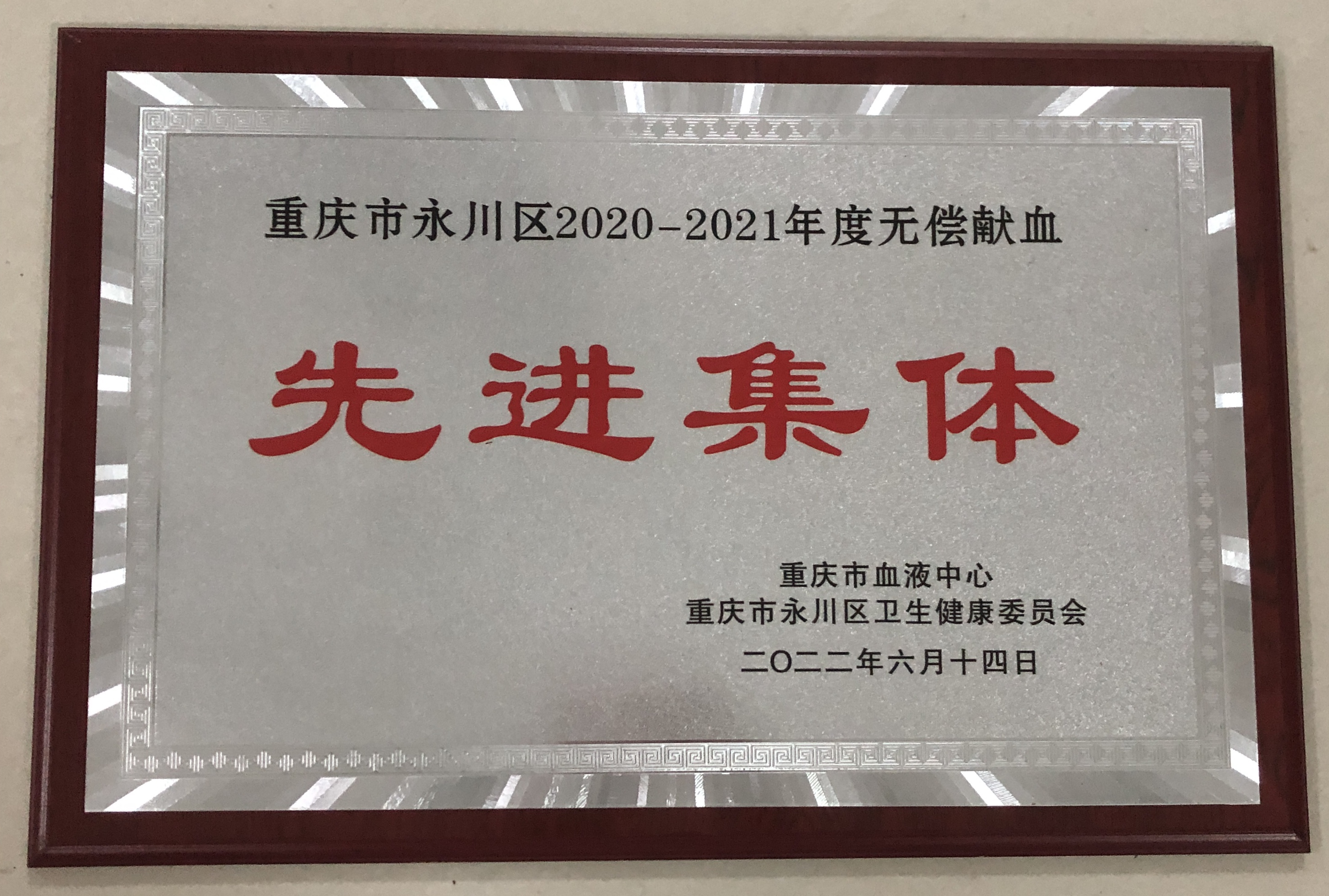 近日,重庆市血液中心和重庆市永川区卫生健康委员会联合下发《关于表彰2020-2021年度永川区无偿献血先进集体和先进个人的通报》,我校荣获“永川区2020-2021年度无偿献血先进集体”荣誉称号;校团委书记向明、副书记周独奇荣获“无偿献血促进奖”;段道华、吴倩两位同学荣获“无偿献血优秀志愿者”荣誉称号。