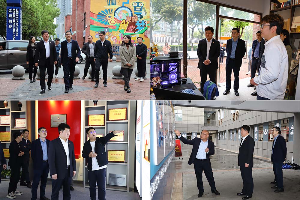 座谈会前,贺秀山一行实地参观了我校文理创谷、青创空间、乡村振兴展厅和书香观云学生社区。